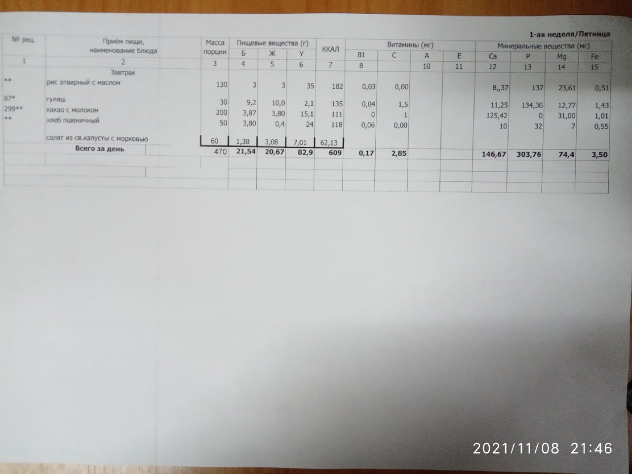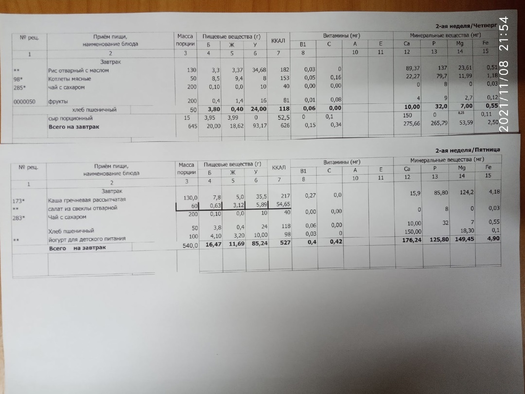 (Меню на 2021/2022 учебный год. Вторая неделя (четверг, пятница))