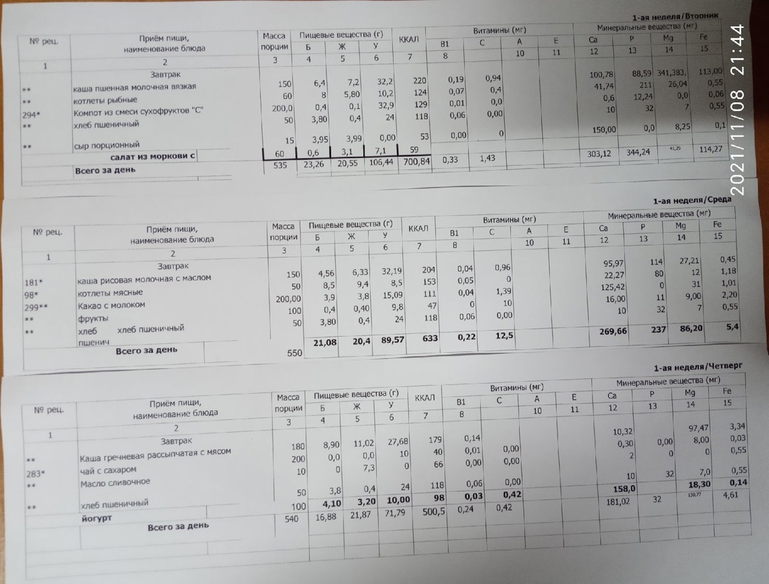 (Меню на 2021/2022 учебный год. Вторник. Среда. Четверг.)